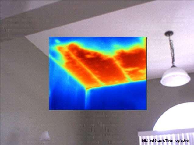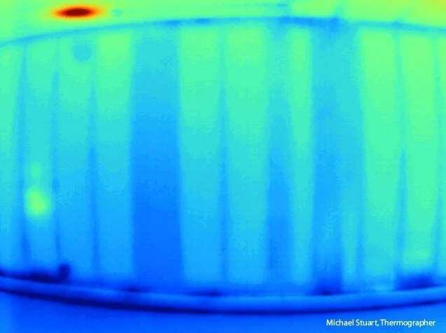 Ha a szigetelés idővel összeesett, hiányzik vagy megsérült, a hőkamera gyakran a fal többi részétől eltérő hőmintát vehet fel. Ezek a területek gyakran hőveszteség vagy – nyereség forrásai lehetnek, és ha elég rosszak, jelentősen magasabb energiafelhasználáshoz vezethetnek.