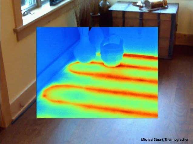Mind az elektromos, mind a hidraulikus padlófűtési rendszerek telepítési problémáknak és meghibásodásoknak vannak kitéve. A hőkamerával meg lehet keresni a padlófűtés helyét, azonosítani a szivárgásokat, akadályokat vagy rövidzárlatokat (a rendszer típusától függően), és elhárítani az egyenetlen fűtési problémákat. A hőkamera szintén használható a telepítések és javítások ellenőrzésére.